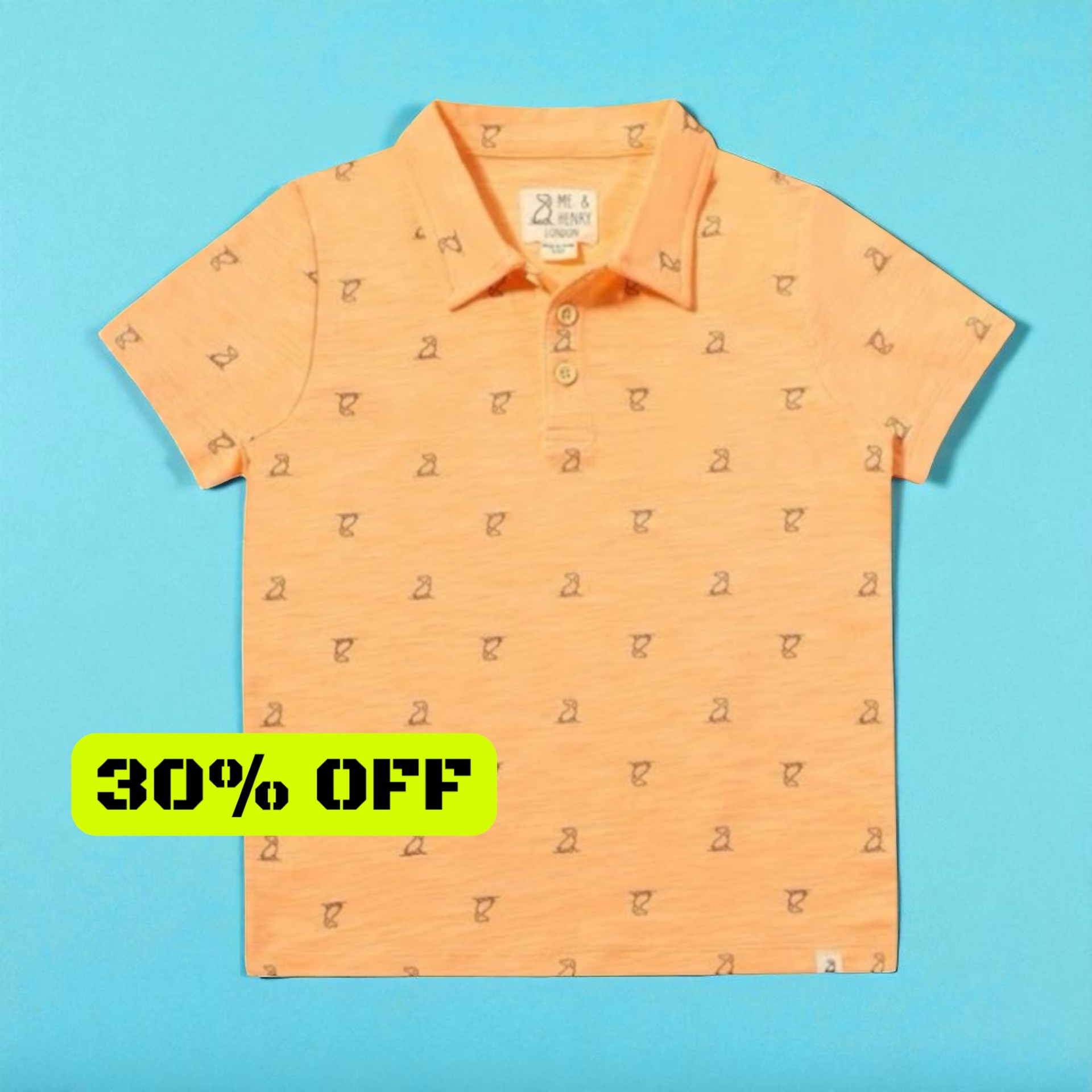 Con un estampado sutil pero divertido sobre una base de color mandarina, este polo combina comodidad y personalidad en una pieza fácil de llevar.